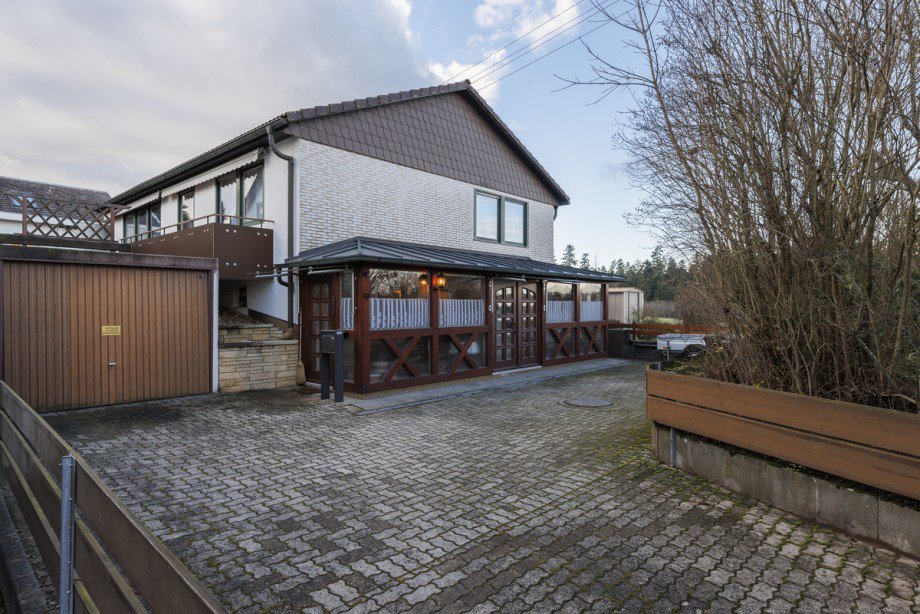 Ein freistehendes modernisierungsbedürftiges Wohnhaus, welches 1974 in Holztafelbauweise errichtet wurde, mit einer Einzelgarage, einem nachträglich angebauten Windfang, einer überdachten Pergola und einem sehr aufwendig und liebevoll erbauten Gartenhaus, welches durch seine besonderen Schnitzereien besticht.