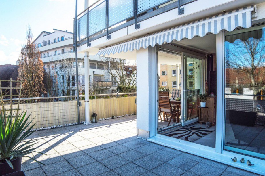 Der offene Wohn- und Essbereich mit den bodentiefen Fenster- und Schiebetürenelementen ist neben dem sehr großzügigen Balkon ein absolutes Highlight. Letzterer lädt zum Entspannen ein und verleiht mit seinem mediterranen Wohnflair und dem schönen Ausblick einen ganz besonderen Wohnkomfort.